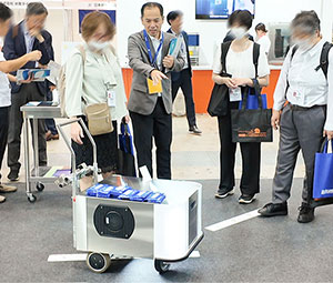 本展示会ではダストボックスが電動開閉となり、手を触れず衛生的にペーパータオルを捨てられるようになりました。