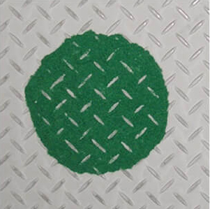 チェッカープレートは、ホウキで掃いた場合、チェッカー模様の裾の部分にゴミが残ってしまいます。ポルカプレート®は、凸部分が丸い形状をしているため、ほとんどゴミが残りません。同様に水はけも良く、排水性・乾燥性に優れているので滑りにくい床材です。