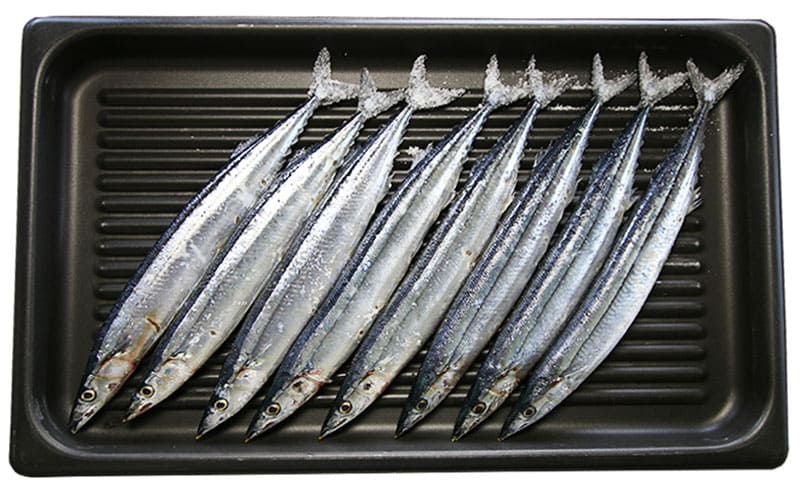 POINT ・波型アルミテフロンホテルパンが無い場合は、薄くサラダ油を塗ったグリッドを使用し調理してください。 ・秋刀魚は焼き汁が多く出る為、グリッドを使用する場合は、汁受けとして下段に25mmホテルパンを投入することをおすすめします。